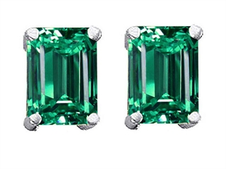 14K White Gold Plated 925 Sterling Silver and Simulated Emerald Cut Emerald Earrings (3.00 ct. tw.)