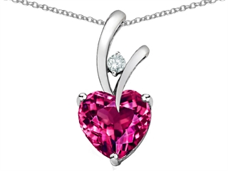 925 Sterling Silver 14K White Gold Plated Lab Created Heart Shaped Pink Sapphire Pendant (1.95 ct. tw.)